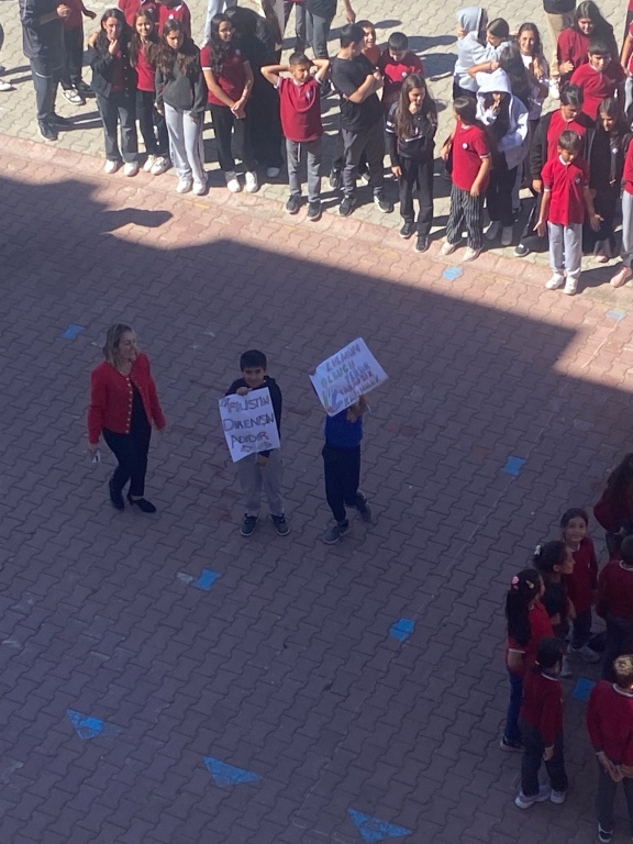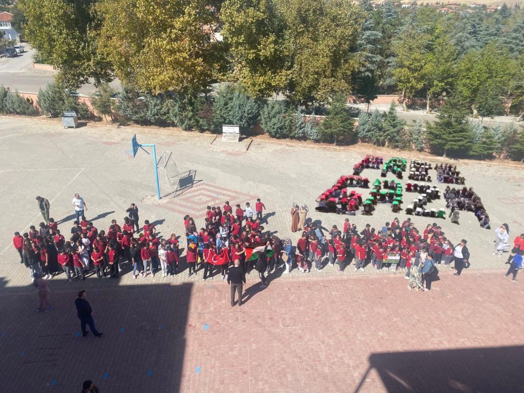 Okulumuzda, dünya gündeminde önemli bir yer tutan Filistin meselesine dikkat çekmek amacıyla anlamlı bir farkındalık etkinliği gerçekleştirildi. Öğrencilerin katılımıyla düzenlenen etkinlikte, Filistin halkının yaşadığı insani kriz ve tarihi süreç hakkında bilgilendirici sunumlar yapıldı.