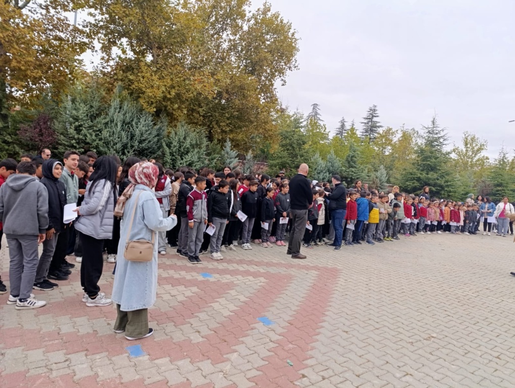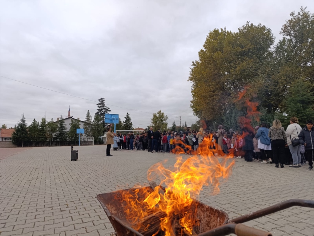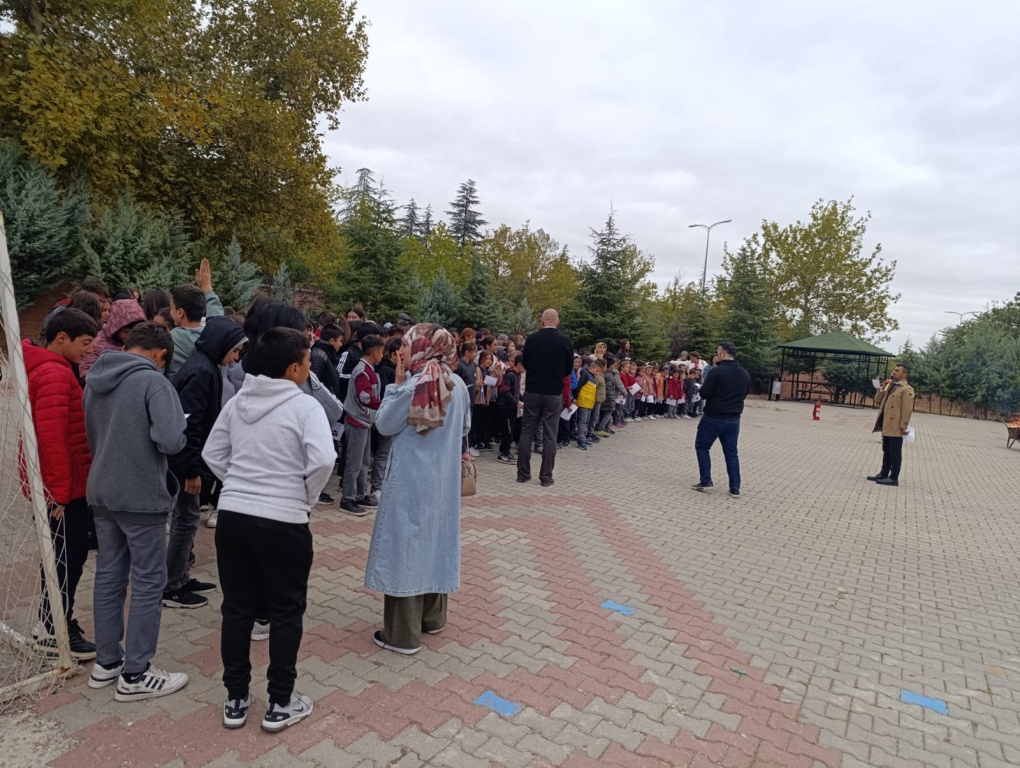 Bina tahliye tatbikatında, öğrencilerimiz 1.45 dakikada öğretmenleri ile birlikte bina tahliyesini tamamladı.